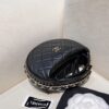 The interior showcases microfiber lining with pockets. Leather strap ensure versatile, all-day wearability. Exquisite Chanel craftsmanship.