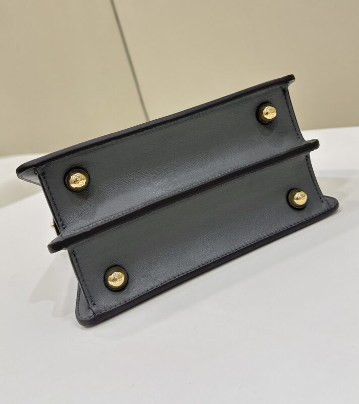 Crafted from smooth calfskin leather, this structured top-handle bag replicates every defining detail of the authentic Fendi Peekaboo with expert precision. The grigio calfskin exterior is paired with antique gold-tone turn-lock hardware, featuring internal lock with key. Hand-finished seams and precision stitching reflect the heritage of Roman luxury with bold FF monogram and avant-garde silhouettes.