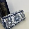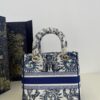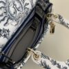 Crafted from cannage quilted lambskin leather with signature Cannage stitching in the D-Lite embroidered canvas version format, this structured top-handle bag replicates every detail of the authentic Christian Dior Lady Dior with meticulous precision. The blue zodiac finish exterior is elevated by antique gold-tone ‘D.I.O.R.’ letter charms and feet hardware, featuring magnetic snap closure under a flap front. Hand-finished stitching and even seam lines reflect the Maison’s Parisian atelier standards.