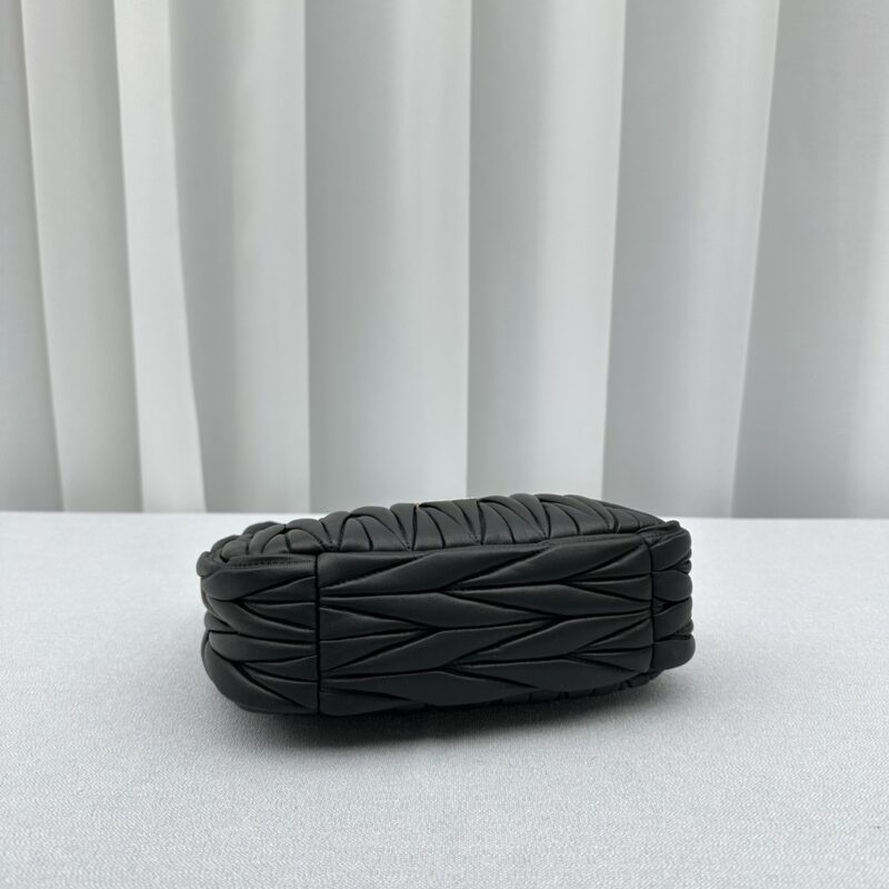 Crafted from matelassé nappa leather, this hobo bag replicates every defining detail of the authentic Miu Miu Wander with expert precision. The nero nappa exterior is paired with Miu Miu lettering hardware, featuring open-top hobo. Hand-finished seams and precision stitching reflect the heritage of Prada’s little sister — irreverent, playful, unexpectedly chic.